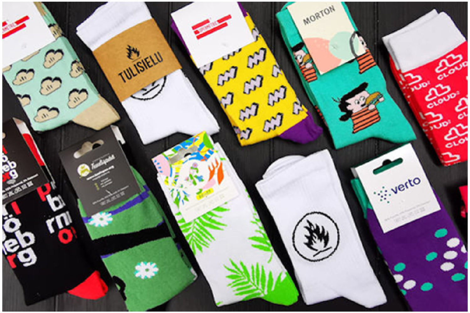 Printed socks for clothing are socks that have unique designs, patterns, or images printed directly onto the fabric. These designs can be anything from vibrant colors and intricate patterns to fun graphics and customized artwork. Printed socks add a distinctive and personalized touch to an individual's clothing ensemble, allowing them to express their style, interests, or personality. Printed socks offer a creative and eye-catching addition to one's clothing collection, allowing individuals to showcase their unique taste and preferences through their footwear